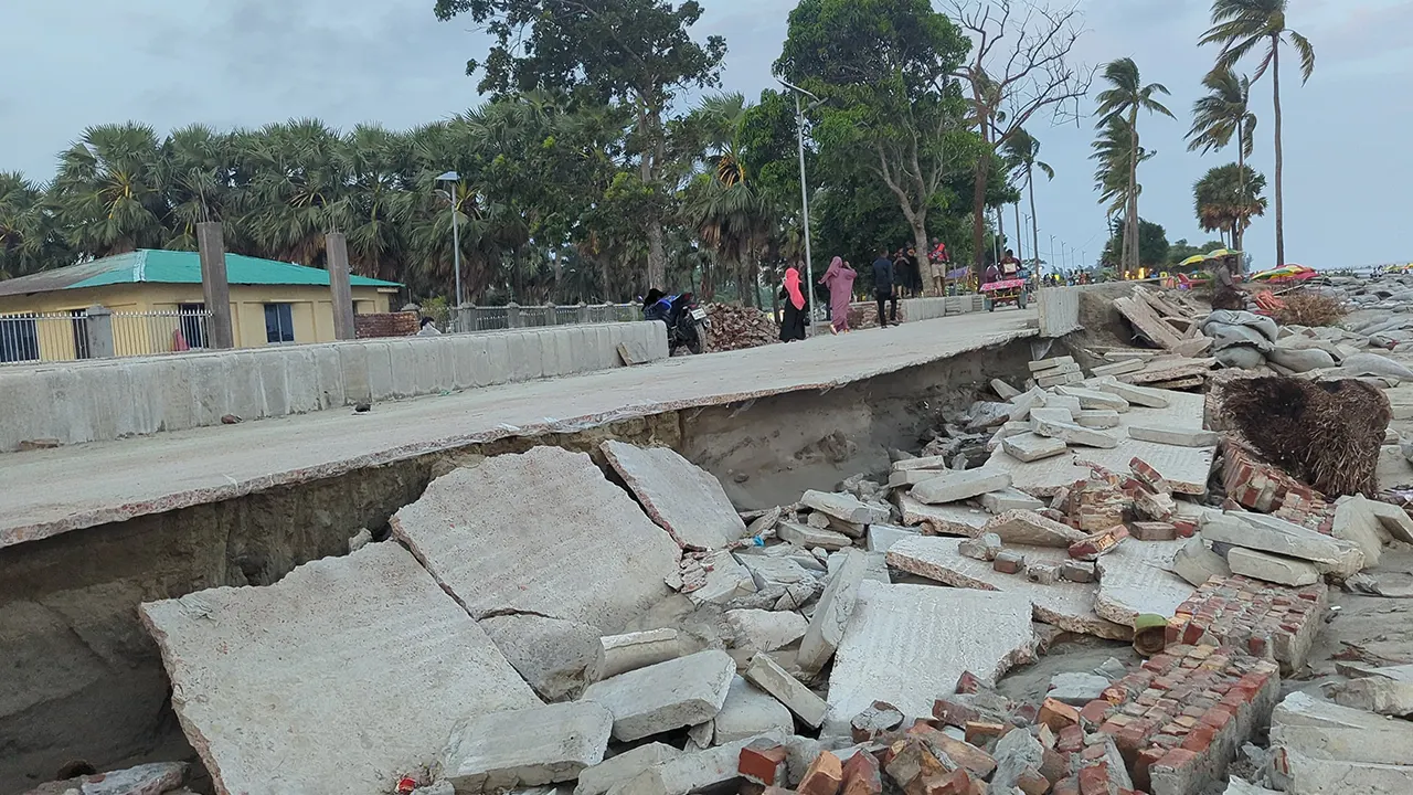 পটুয়াখালীর কুয়াকাটা সৈকতে সাগরের পানির লেভেল ঘেঁষে নির্মাণাধীন আরসিসি রাস্তাটি এখন সমুদ্রগর্ভে। প্রায় ৫ কোটি টাকার এ সড়কটি জলোচ্ছ্বাসের তাণ্ডবে লন্ডভন্ড হওয়ার ঘটনায় এরই মধ্যে পাঁচ সদস্যের তদন্ত কমিটি গঠন করা হয়েছে। আনুষ্ঠানিকভাবে তদন্ত কাজও শুরু হয়েছে।