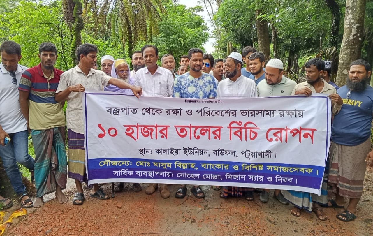 পটুয়াখালীর বাউফলে বিশিষ্ট সমাজসেবক ও ব্যাংকার মো. মাছুম বিল্লাহ এর ব্যাক্তি উদ্যোগে ১০ হাজার তালের বীজ রোপন করা হয়েছে।