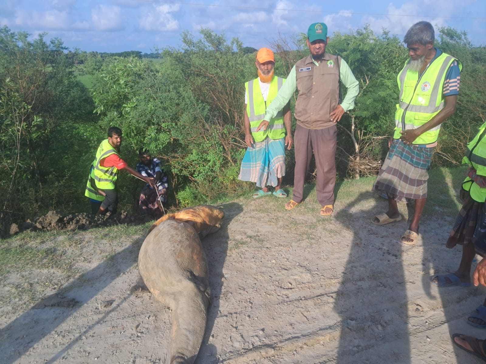 বন বিভাগের মহিপুর রেঞ্জ কর্মকর্তা মনিরুজ্জামান বলেন,খবর পাওয়ার সঙ্গে সঙ্গে আমাদের টিম ঘটনাস্থলে গেছে। ডলফিনটি যাতে দুর্গন্ধ ছড়াতে না পারে, সে জন্য দ্রুত মাটিচাপা দেওয়ার ব্যবস্থা নেওয়া হয়েছে।”