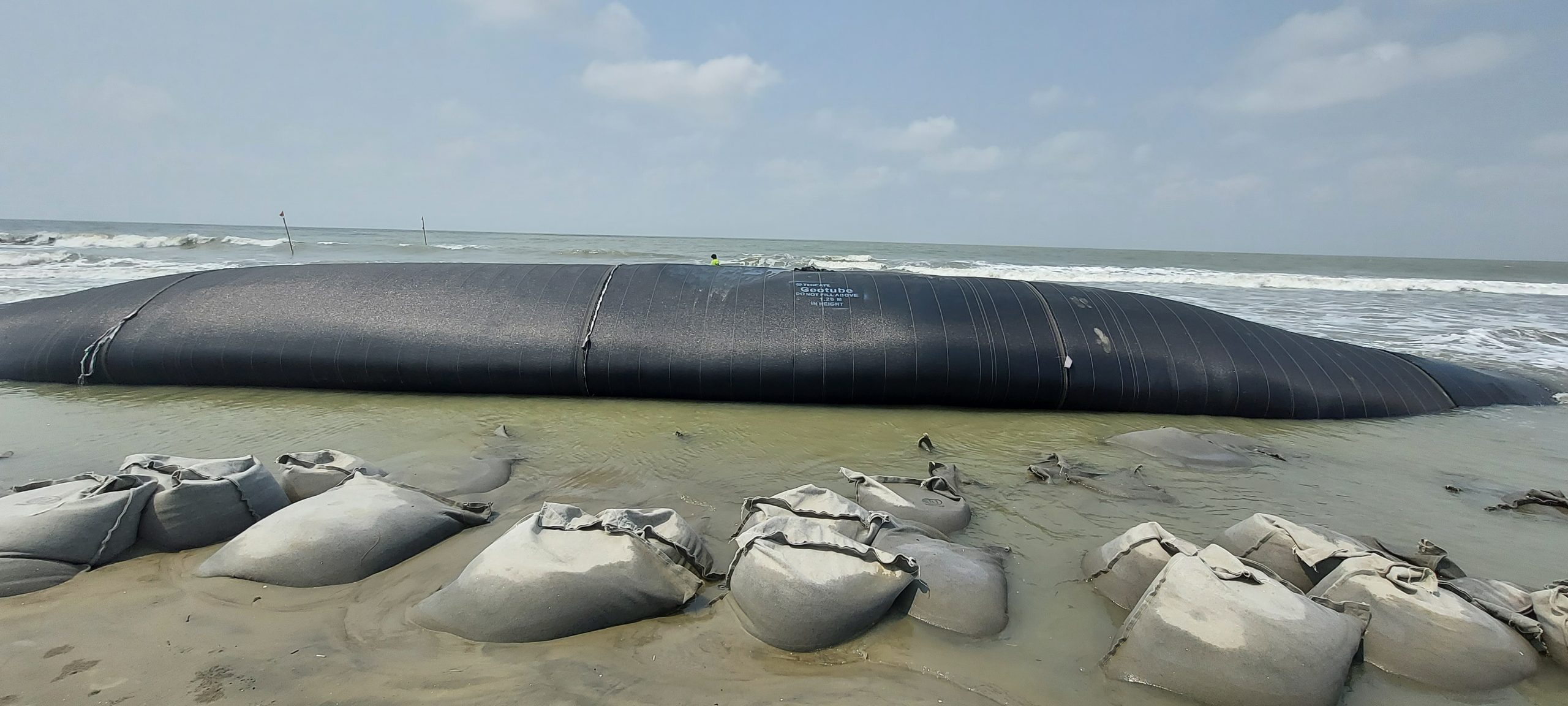 বালুক্ষয় থেকে সৈকত রক্ষায় দেশে প্রথমবারের মত ব্যবহৃত হচ্ছে ওভেন জিওটিউব। পরীক্ষামূলকভাবে বসানো হচ্ছে ভাংগন কবলিত সাগরকন্যা কুয়াকাটা সৈকতের দেড় কিলোমিটার এলাকায়। তিন কোটি ৬০লাখ টাকা ব্যয়ে নির্মিতব্য প্রকল্পটি বাস্তায়ন করছে পানি উন্নয়ন বোর্ড। এটি বাস্তবায়িত হলে বর্ষা মৌসুমে বালুক্ষয় থেকে রক্ষা পেতে পারে সৈকতটি এমনটাই মনে করছেন পানি উন্নয়ন বোর্ডের কর্মকর্তারা।