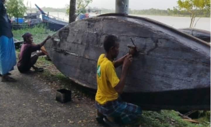সারাদেশে ইলিশসহ সব ধরনের মাছ ধরায় ২২ দিনের নিষেধাজ্ঞায় পটুয়াখালীর দুমকিতে জেলেরা ব্যস্ত সময় পার করছে মাছ ধরার নৌকা মেরামতের কাজে।