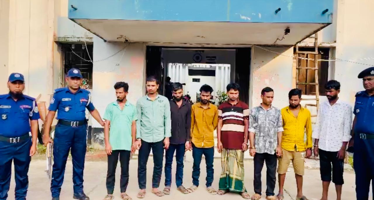 আটকরা হলেন— মোঃ হারুন (৩০), মনির হাওলাদার (৩২), জাহাঙ্গীর আলম (৩৬), আঃ রাজ্জাক (৩০), মোস্তফা হাওলাদার (৩৭), সুমন তালুকদার (২৫), ওয়াসিম (৩৫) ও রনি চৌকিদার (২৬)। তারা পটুয়াখালী, বরগুনা, বরিশাল, নারায়ণগঞ্জ ও চাঁদপুর জেলার বাসিন্দা।